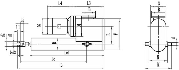 DYTP型平行式電液推桿外形尺寸及安裝尺寸