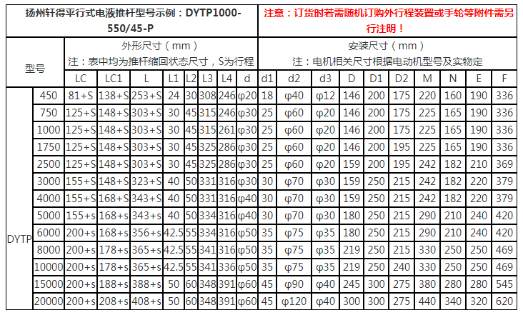 DYTP型平行式電液推桿技術參數(選型表)