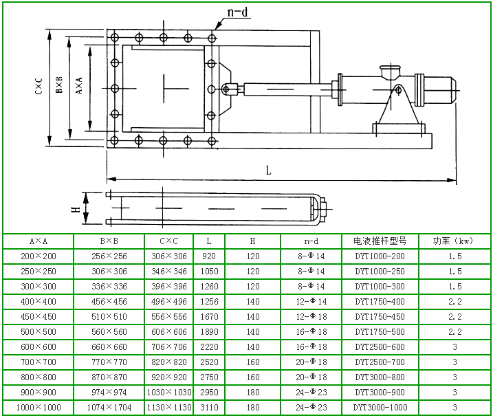 DYLV-0.6型電液動平板閘門外形圖及安裝尺寸參數
