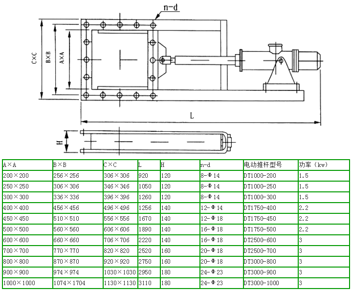 電動平板閘門外形圖及安裝尺寸參數