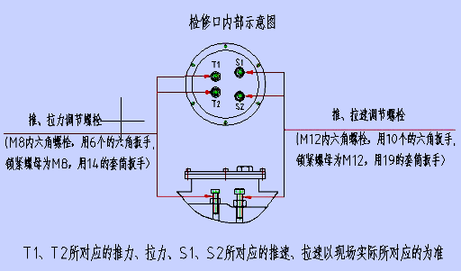 圖中的T1、T2為壓力(推拉力)調節閥,用6#內六角扳手調節。